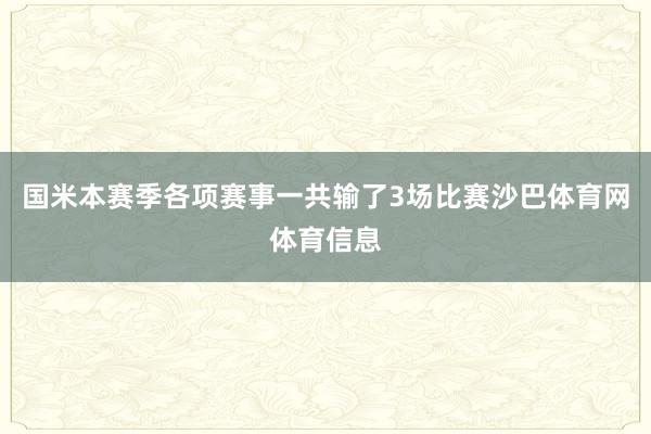 国米本赛季各项赛事一共输了3场比赛沙巴体育网体育信息