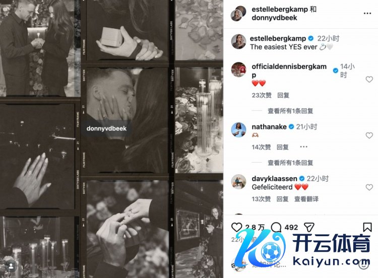 埃斯特尔在Instagram上发布了与范德贝克的一组订婚相片,并配文写谈:“这是我东谈主生中最爽脆的一次‘YES’。”这条动态得益了大批祝贺,其中包括前曼联太太团的多东谈主留言。