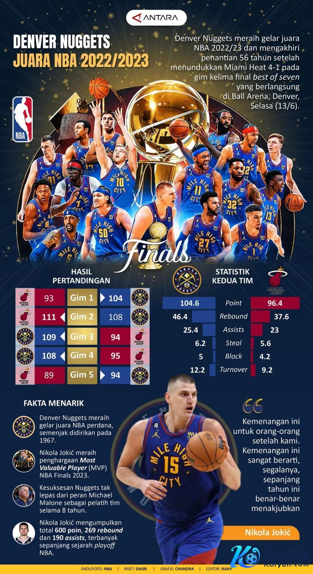这个赛季,约基奇场均孝敬30.1分、13个篮板、10.4次助攻、1.7次抢断和0.9次盖帽,这些数据以至很是了他之前夺得MVP时的说明。单从数字上看,他再次蝉联MVP并非不行能。然而,这种超神说明背后,却伴跟着一种令东说念主唏嘘的“里程悲”——仿佛他每罢了一项豪举,球队的收获就显得愈加孤立。就像一位乐手在演奏最完满的旋律时,却发现我方独自站在空荡荡的舞台上,四周莫得听众。这样的反差,是否让这位才华横溢的球员感到一点苦涩?