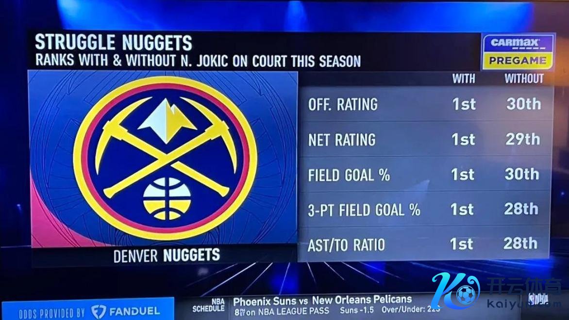 谈到掘金队的近况,不得不说,他们现存的声威和政策体系简直难以匹配如斯超卓的约基奇。今天的比赛转播方提供了一组明显的数据对比,令东说念主直呼触动。数据默契,当约基奇在场上时,掘金队的说明与他不在场时判然不同。仿佛是夜空中最亮的星倏地隐匿,总共这个词队列的光泽也随之暗澹。这种反差,就像是最佳的画家失去了画笔,再宏伟的蓝图也难以施展。